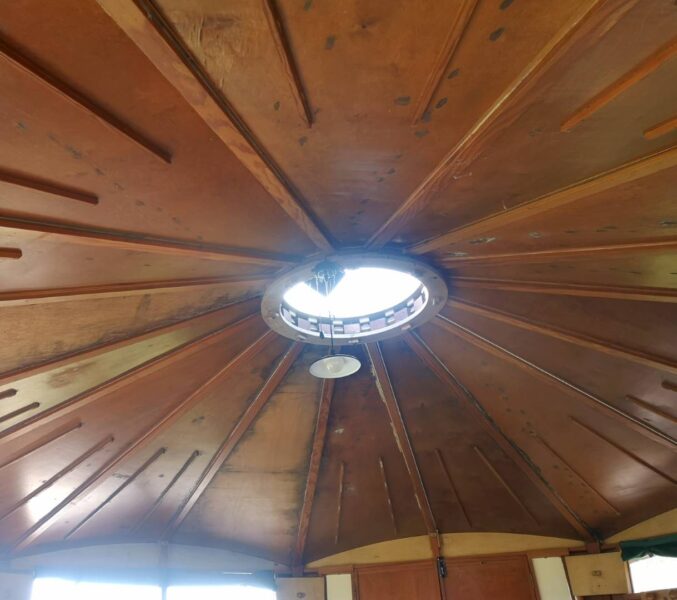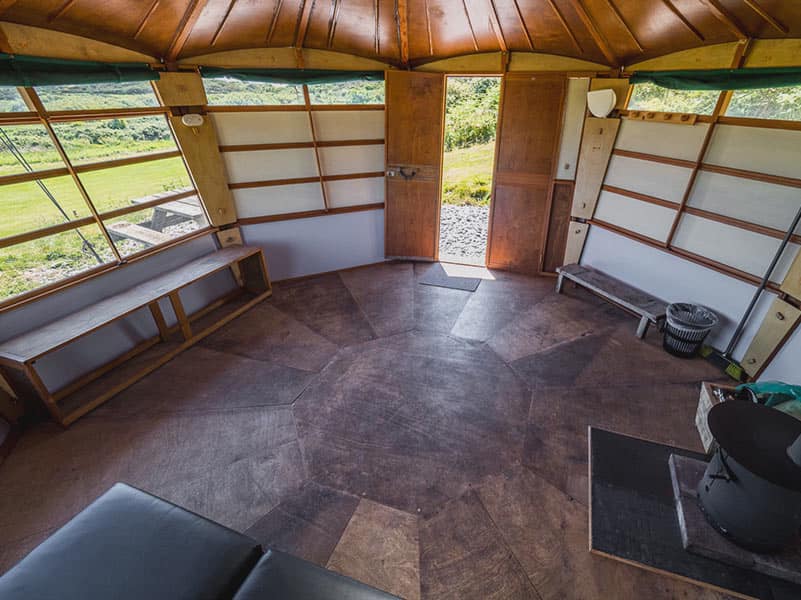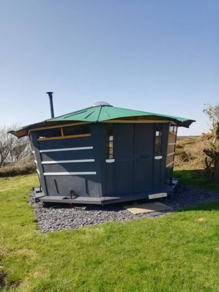 We have two octagonal wooden dwellings on our site, named Cragen and Cerrig.